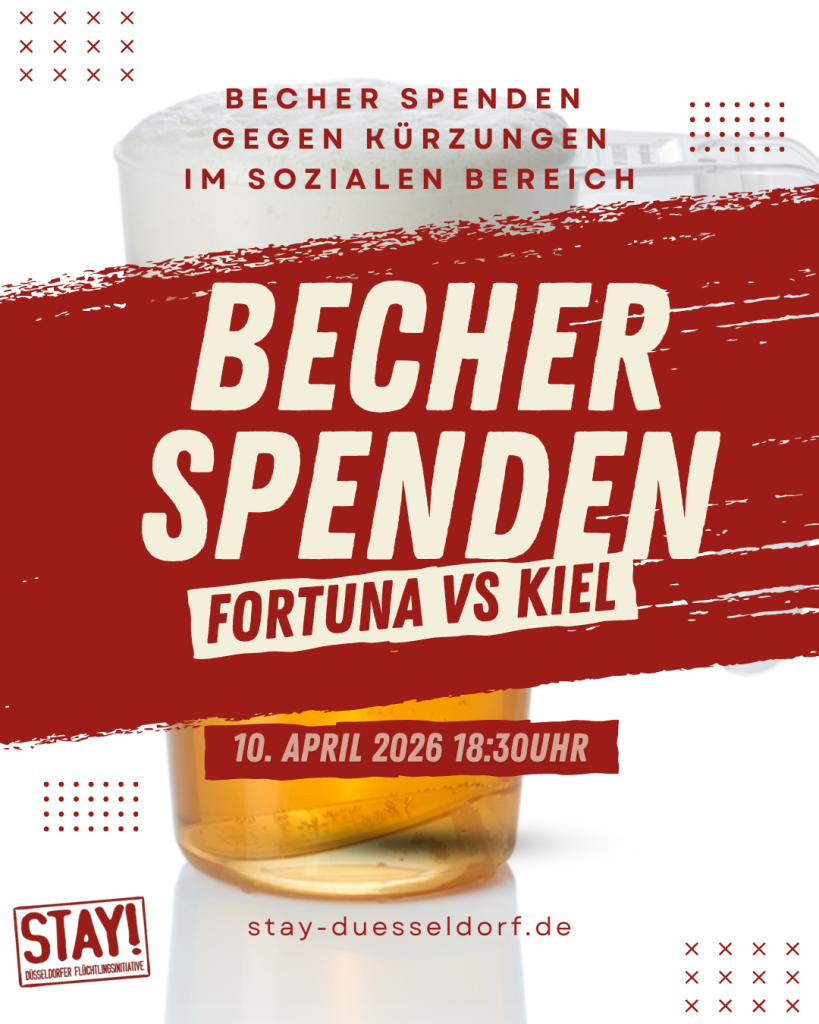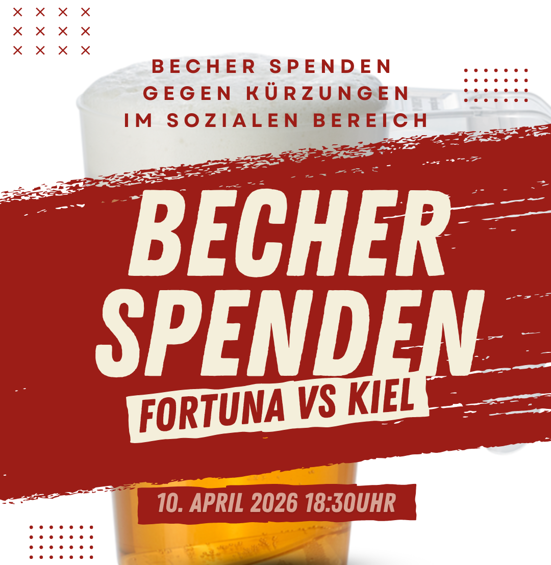 Beim morgigen Heimspiel von Fortuna gegen Kiel sammeln wir zusammen mit engagierten Fans der Südkurve und weiteren Helferinnen und Helfern Becher für unser Projekt Medinetz. Dieses ist Anfang März von erheblichen Kürzungen im Sozialetat betroffen gewesen, die wir nun über Spenden auffangen wollen. Jeder gespendete Becher hilft uns, erkrankten Menschen die notwendige Behandlung zu ermöglichen. Herzlichen Dank an alle, die uns morgen mit ihrer Becherspende unterstützen!